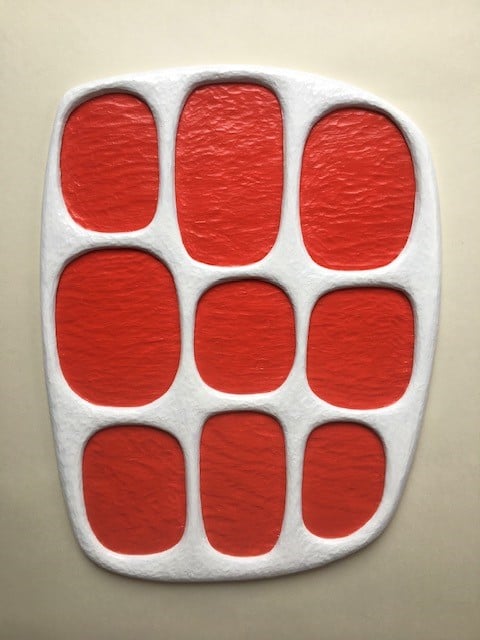 Generelt arbejder han abstrakt med et organisk udtryk. Værkerne er savede med
